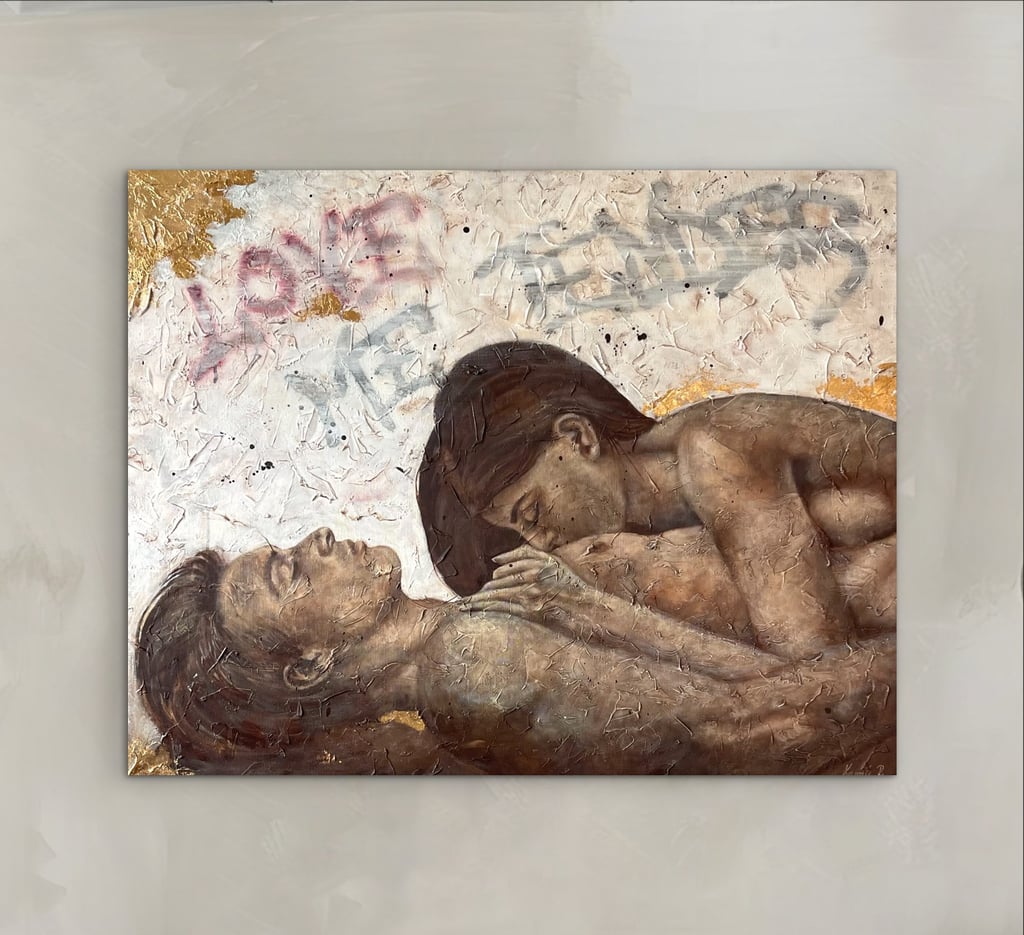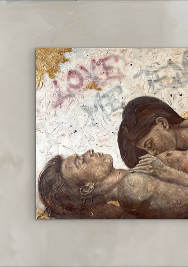 A moment of closeness captured in texture and light — where strength meets vulnerability, and two souls connect in silence.